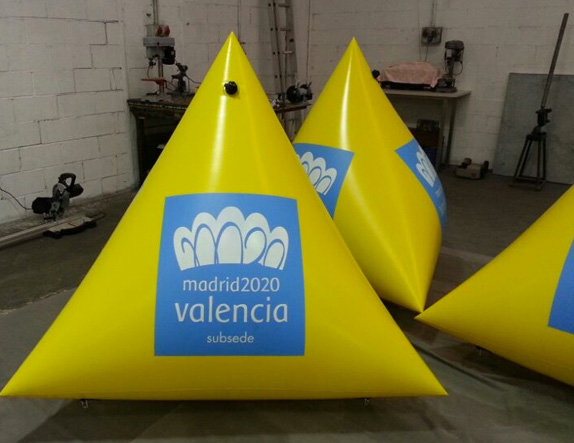 Las boyas pueden ir dotadas de 2 bolsillos transparentes de grandes dimensiones para incorporar publicidad. También pueden ir impresas con uno o varios colores